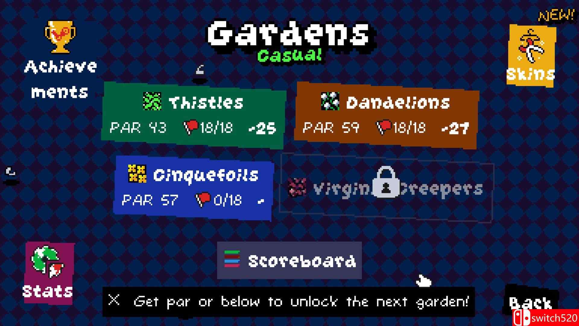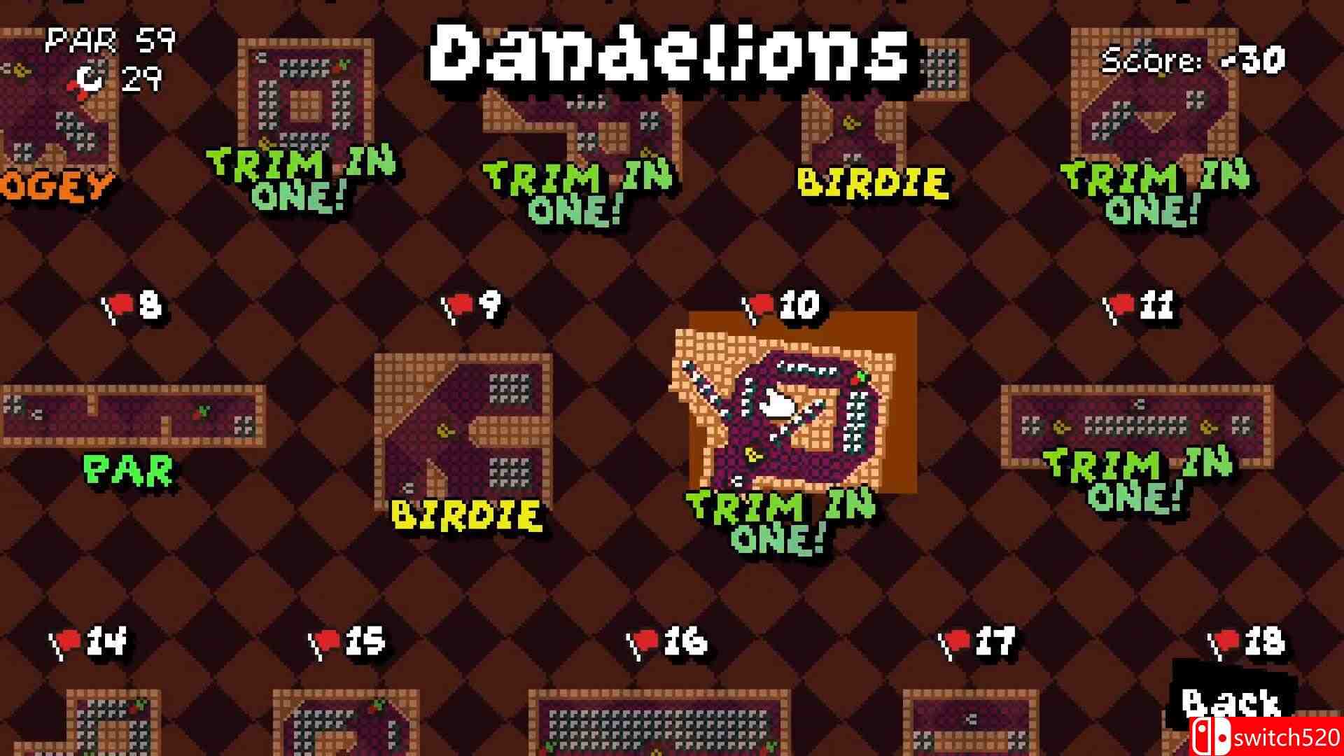 《剪草大作战》是一款动作冒险类(ACT)游戏,TRIMJOB 是一款高尔夫与园艺相结合的游戏。瞄准并点击,在 4 个不同的世界中修剪花园。尝试在全部 72 个关卡中创下新高!放松身心,享受原声音乐和复古美感。switch520